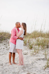 When picking outfits we recommend keeping in mind the word “complement” rather than “match.” For example, if the groom-to-be is wearing a blue and pink pastel plaid shirt, the bride-to-be may want to choose a long, soft blue dress. It can also be a great idea to choose “color-families,” such as pastels or jewel tones.
